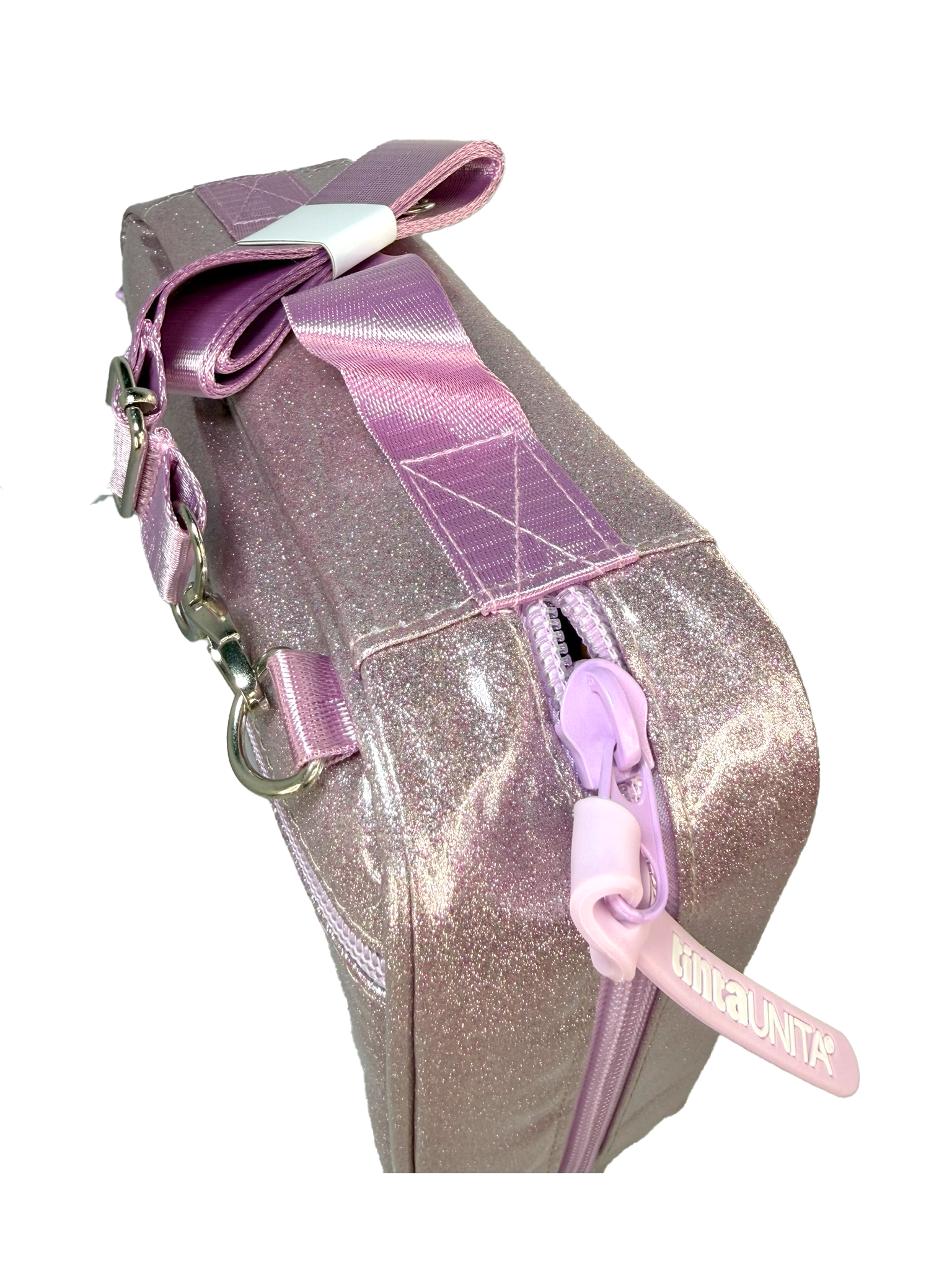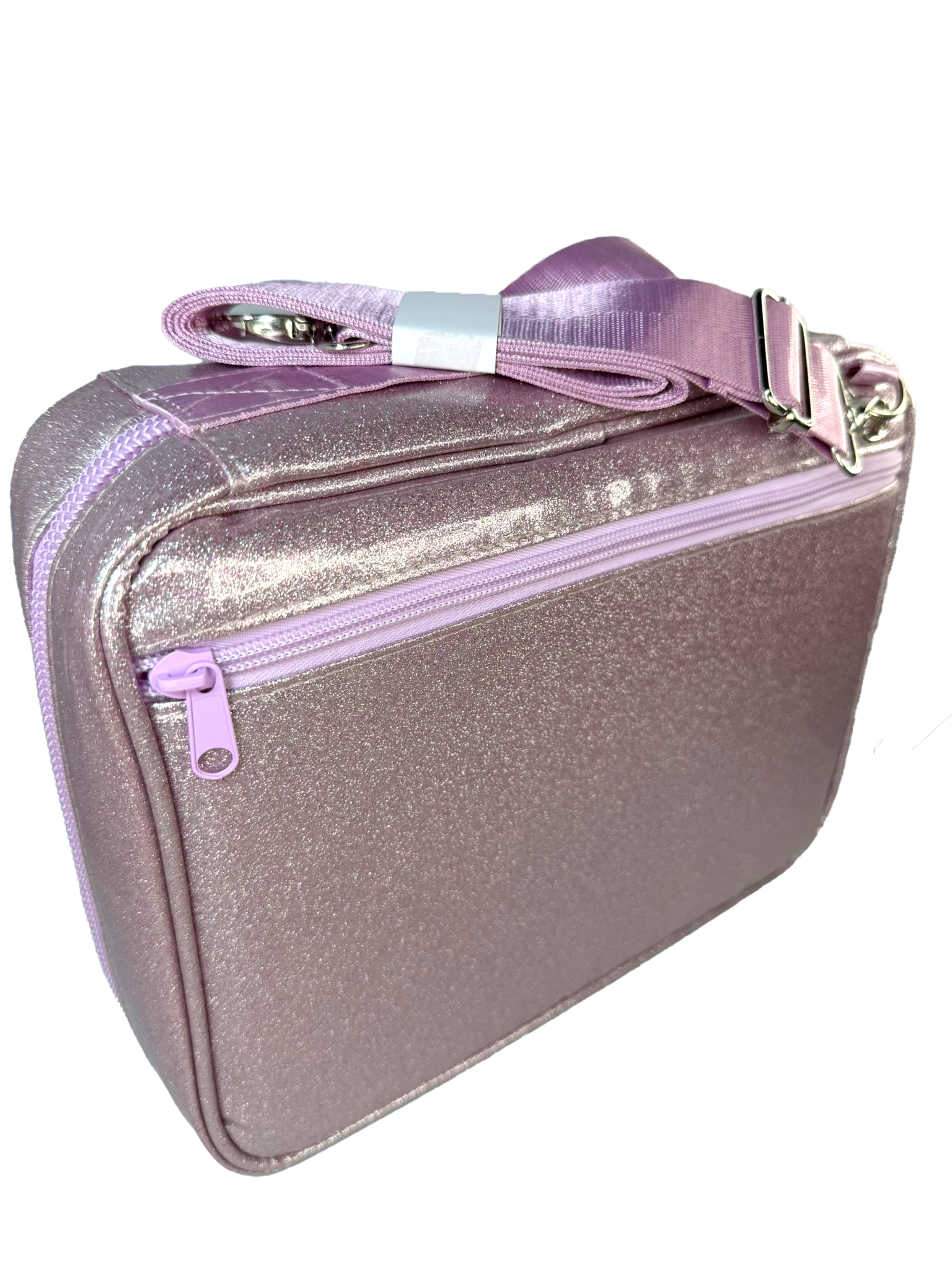 Astuccio con dimensioni circa 27,5 × 21,5 × 10 cm, con tracolla e maniglia rimovibile.